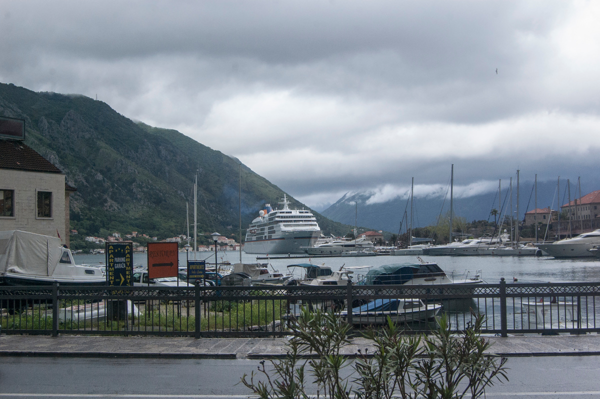 Удивительно, но кошек я там не заметил. Может быть, погода была не кошачья... Собственно говоря, речь идет о городе Котор. Можно сказать, что город расположен во фьорде - длинный извилистый залив, обрамленный пологими горами. Очень хорошо это заметно из крепости, которая как бы ползет по склону горы к вершине. Я оставил своих дам в кафе, а сам полез вдоль крепостной стены в цитадель на вершине горы. На вершину ведет несколько маршрутов - простенькие и довольно опасные. Я, по не веденею, выбрал не самый простой. Прогулка заняла весь день, но оно того стоило.