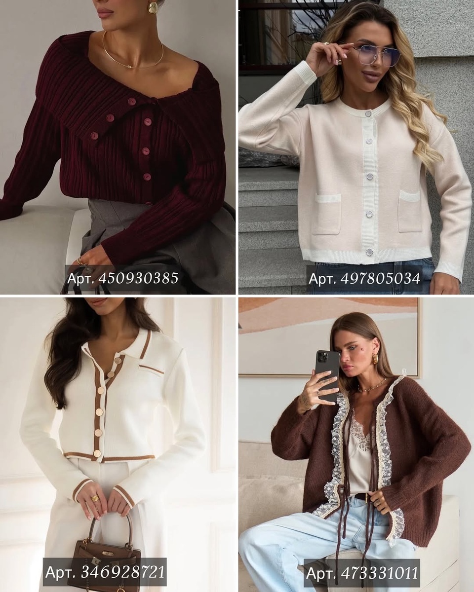 Зима — время мягких объятий трикотажа, уютных фактур и продуманных деталей. В этой статье — только практичные и очень красивые вещи с понятными артикулами: кардиганы, свитеры, зимние аксессуары и верхняя одежда. Каждую позицию разбираю подробно: посадка, материал, кому подходит и как стилизовать, чтобы выглядеть современно и женственно. Идём точно по порядку артикулов с коллажей.