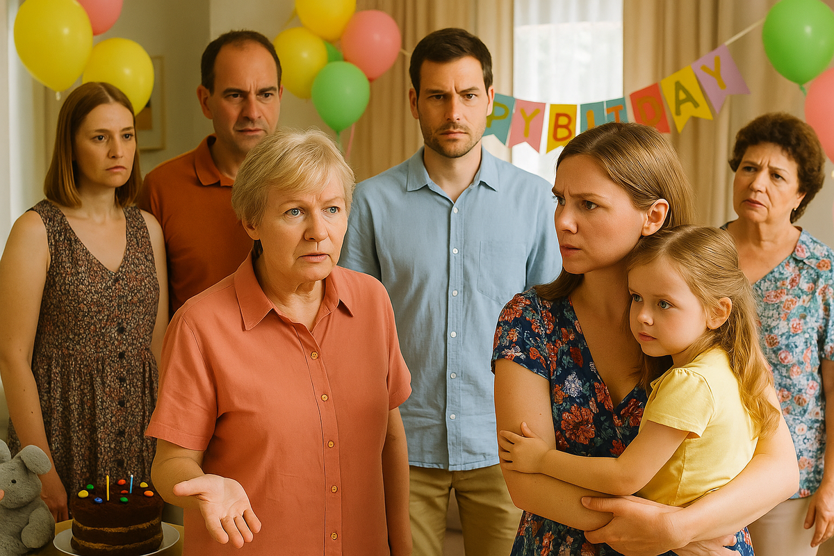 — Как красиво, — произнесла она, осматривая комнату. — Только шары низко висят, ребёнок заденет. И свечей на торте шесть? Ей же четыре.