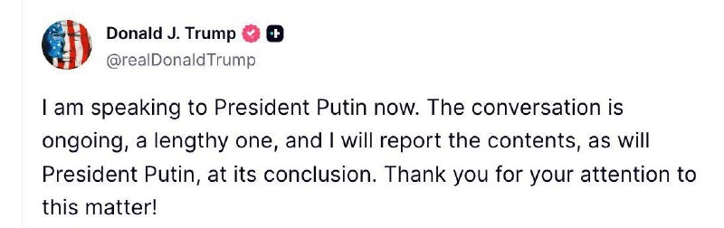 Я сейчас разговариваю с Президентом Путиным. Разговор идет, длительный, и я доложу о его содержании, как и Президент Путин, по его окончании