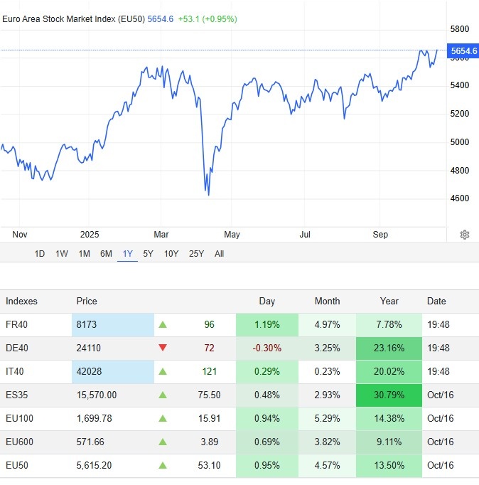 Европейский Stoxx 50 вырос на 0,9%, а Stoxx 600 — на 0,6%. Stoxx Food & Beverage подскочил на 3,2% после того, как Nestlé объявила о планах сократить 12 000 рабочих мест в ближайшее время и еще 4 000 в течение следующих двух лет. Во Франции инвесторы положительно оценили тот факт, что новое правительство пережило вотум недоверия.