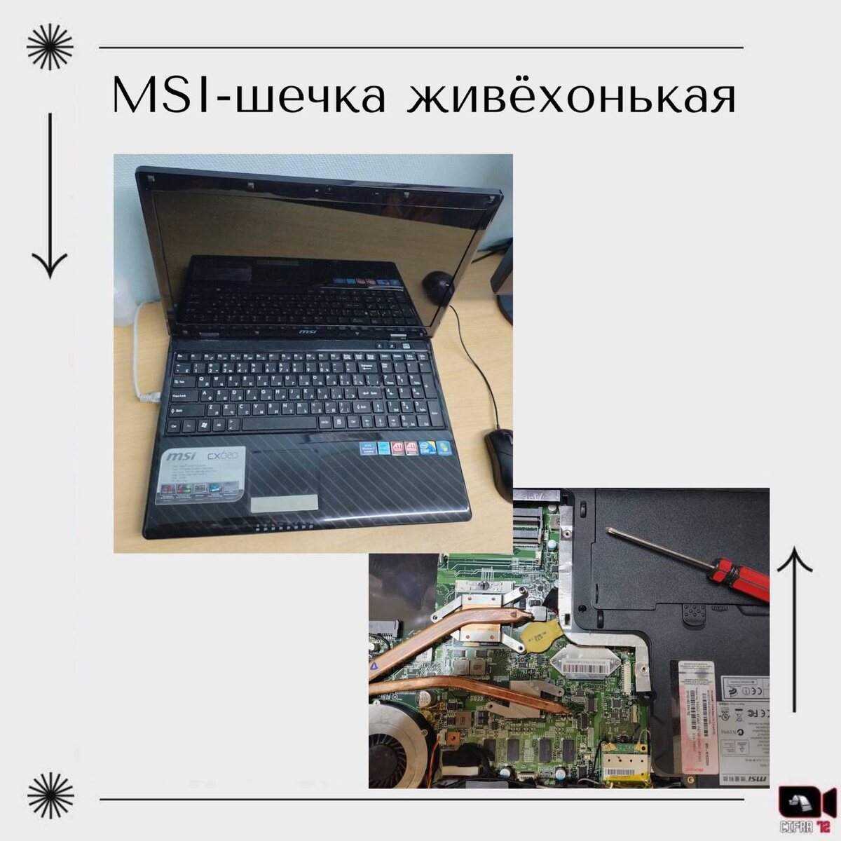 08.10.2025 - к нам снова попал ноутбук MSI, только уже немного другой модели. Жутко тормозил и выключался, не отвечал своевременно на задачи. При разборке - обнаружили вышедшую из строя ОЗУ (1 планка), которая в основном и была причиной всего. Вдобавок, заменили термопасту (к слову сказать - термопаста абсолютно высохла и была нарушена теплопроводность, ноутбук сильно нагревался). Заменили ОЗУ на более современную, установили вместо 2 Гб - 4. Также по желанию клиента - был заменён HDD на SSD-диск и установлена ОС. Теперь эта MSI-шка будет жить и радовать своих владельцев ещё очень долго 👌 🥹