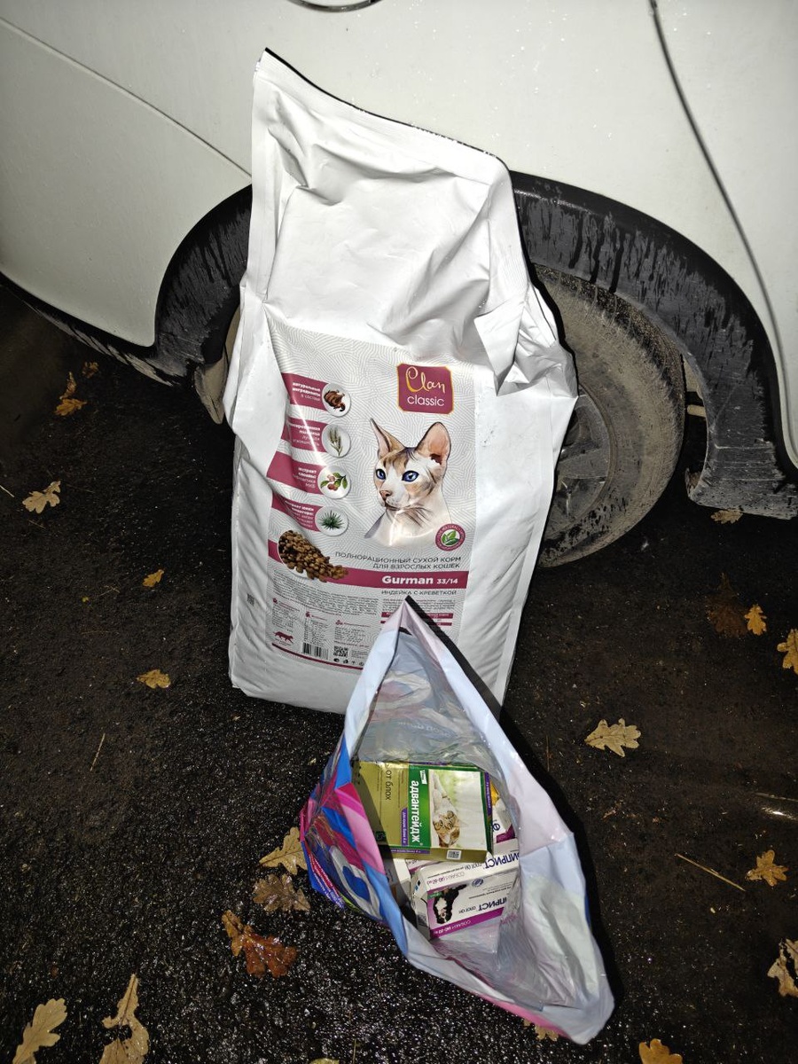 Я привезла корм к подруге моей подруге в Тосно, она завтра заберет, всех обработает и отвезёт корм