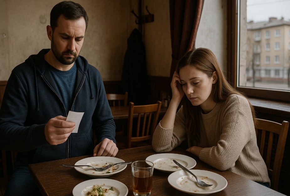 Сергей нервно постукивал пальцами по скатерти, не отрывая взгляда от счёта, который, казалось, невидимо рос у него перед глазами.