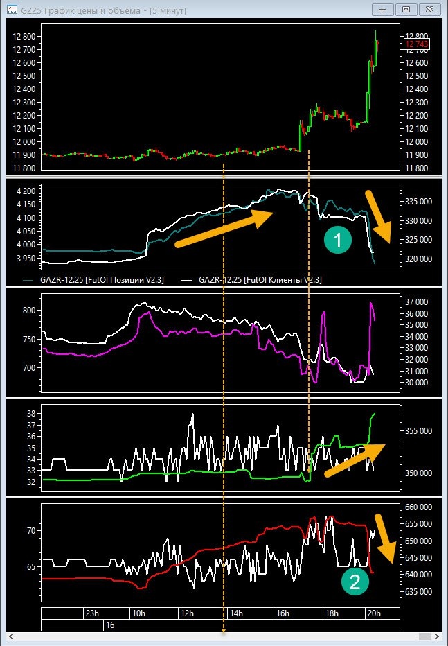 Прочитал сейчас мнение, что рост идет на покупках физиков на последние деньги и на закрытиях их же шортов по стопам. И в первую очередь речь шла про Газпром, как самый рискованный актив для покупки на позитивных новостях. Однако РОИ показывает, что все ровно наоборот. Шорты по стопам кроют юрики (2), а физики закрывают лонги (1), открытые сегодня утром. Прям гордость за физиков берет! И если что, в акциях народ так же торгует, как во фьючах.