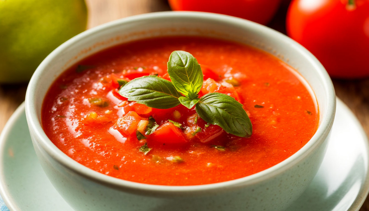 Яркий, свежий и живой, как летний полдень в Андалусии — гаспачо наполняет тарелку ароматом спелых помидоров, сочного перца и хрустящего огурца. Каждая ложка охлаждает, бодрит и возвращает ощущение лёгкости.