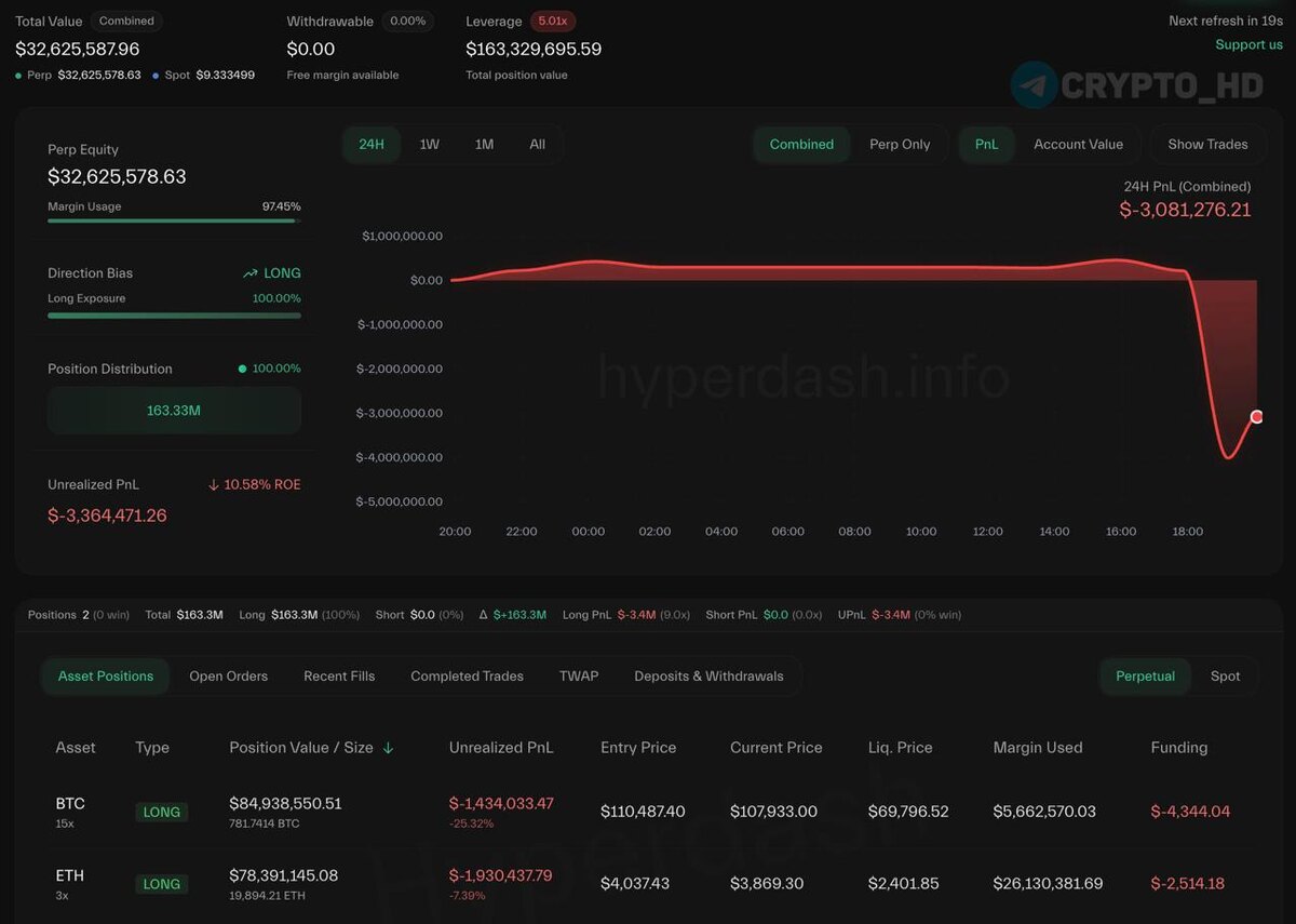 🤨 Кит «0xc2a3» переобулся… За 4 дня он заработал более $5,500,000 на своем шорте по BTC на $140,000,000. Теперь же трейдер решил залететь в лонги: ➠ По #ETH с 3х плечом на $78,300,000. Точка входа: $3869. Цена ликвидации: $2401. ➠ По #BTC с 15х плечом на $85,000,000. Точка входа: $107,933. Цена ликвидации: $69,796. Его кошелек: смотреть Сryptо Headlines