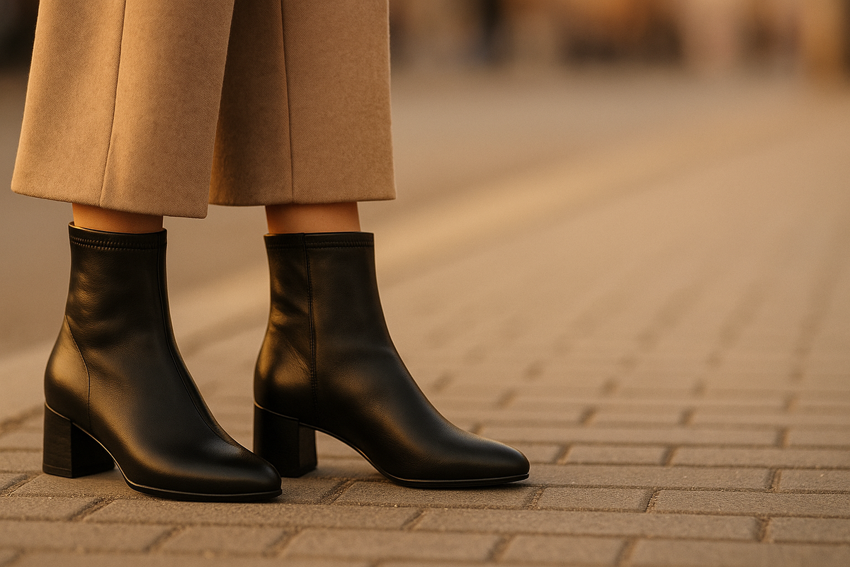 Зачем: это самая универсальная пара под юбки/миди и широкие брюки: делает вертикаль, не бьёт по коленям и выглядит «дороже» без бюджета люкса.