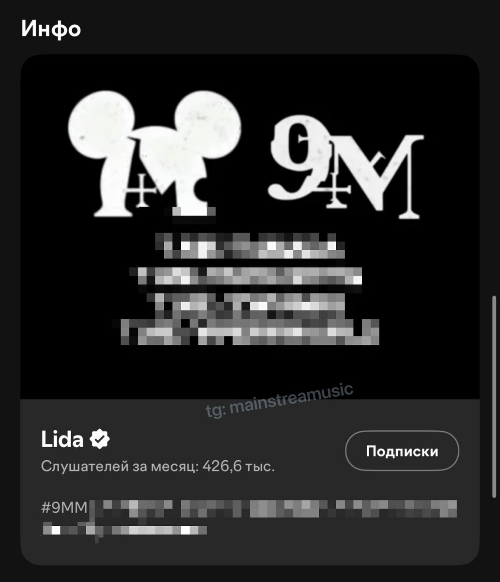 👀 🎵 Карточка Lida на Spotify прямо сейчас И да, как вам «9mm?» UPD: такая карточка еще у madk1d, Кишлак, CUPSIZE, yeschapskii, Пошлая Молли, Heronwater, MACAN, NEWLIGHTCHILD, ROCKET, INSTASAMKA (список будет пополняться). @mainstreamusic