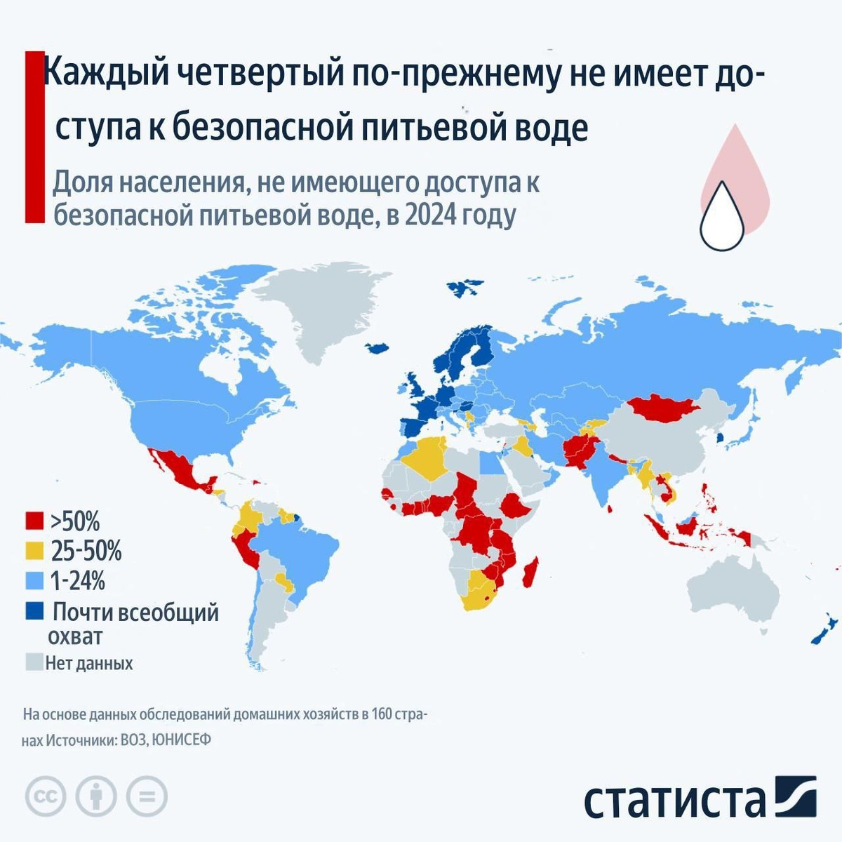 📊 Доля населения не имеющего доступа к безопасной питьевой воде в 2024 году в странах мира
