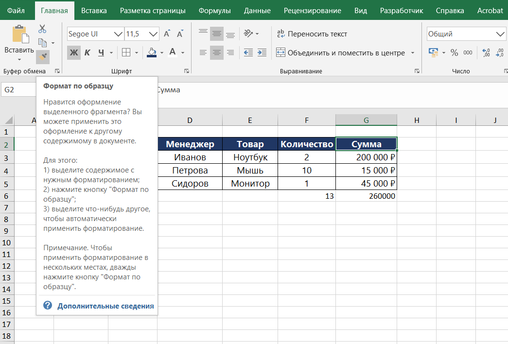 Приветствую, дорогие читатели! Признавайтесь, сколько раз у вас было такое: вы сделали одну ячейку или заголовок таблицы идеально — жирный шрифт, фирменный синий цвет, аккуратные границы. А потом с тоской смотрите на остальные 100 ячеек, которые нужно оформить точно так же. И вы начинаете вручную повторять эти действия: «Заливка... Шрифт... Границы...». Скучно, долго, и можно легко ошибиться. Знакомо? Тогда глубоко вздохните с облегчением. Сегодня я научу вас самому быстрому способу клонирования стиля в Excel. Это даже проще, чем копировать текст. «Формат по образцу» — это кисточка, которая «впитывает» всё оформление одной ячейки и позволяет «закрасить» им любые другие ячейки. Представьте, что у вас есть эталон — идеально оформленная ячейка-образец. Вы просто «подносите» к ней волшебную кисточку, чтобы она скопировала её «ДНК стиля», а затем «красите» этой кисточкой все остальные ячейки. Они мгновенно становятся точными копиями вашего образца! Допустим, у вас есть заголовок, оформленны