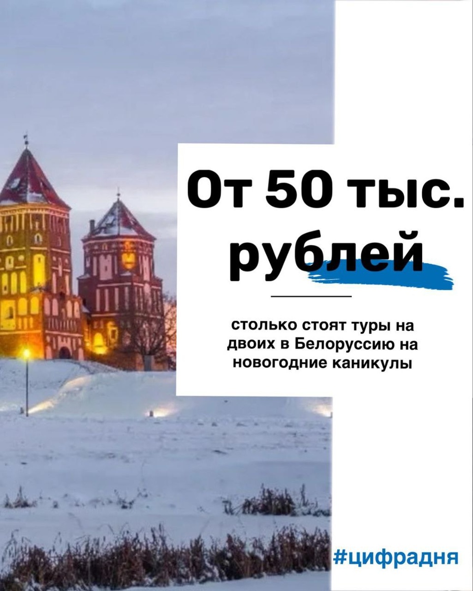 📆 Цифра дня По данным ведущих туроператоров, текущий спрос на новогодние туры в Белоруссию значительно опережает прошлогодние показатели. #ЦифраДня @atorus