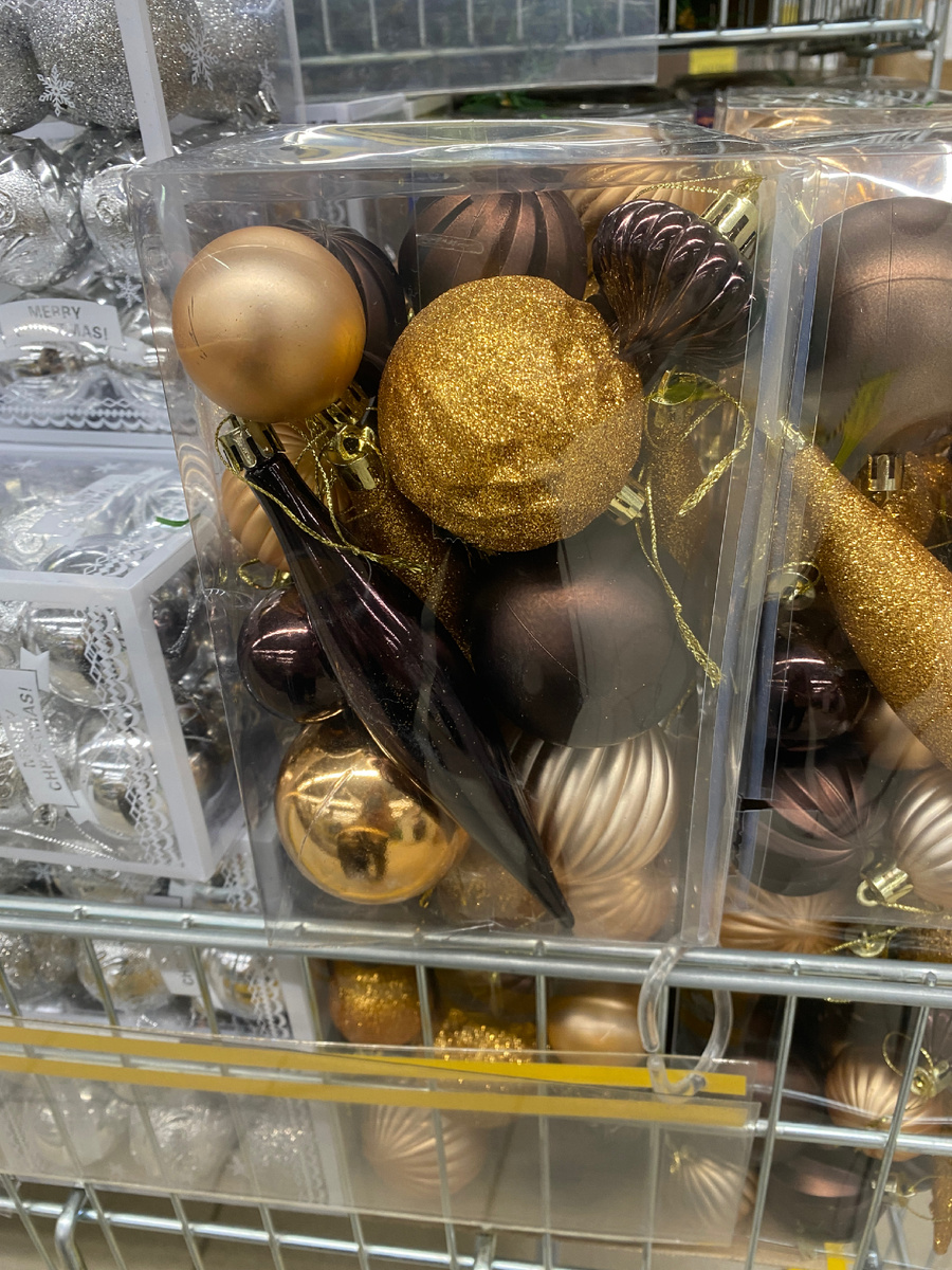 Магазин «Находка» готовится к зиме и Новому году! В ассортименте появились праздничные украшения и практичные вещи для холодной погоды. Рекомендация магазина: начать покупки заранее, чтобы избежать суеты и успеть купить всё по низким ценам. Набор елочных шаров, 24 шт. Набор шаров, 12 шт. (Диаметр 5см) Набор шаров, 12 шт. (Диаметр 6см) Набор шаров, 24 шт. (Диаметр 3см) Варежки женские меховые Галоши женские утепленные Тапочки мужские Сапоги мужские войлочные Костюм мужской утепленный Пуфик «Аура» Итог: магазин «Находка» предлагает бюджетные варианты для подготовки к праздникам и суровой зиме, от красивых елочных игрушек до теплой обуви и специальной одежды.