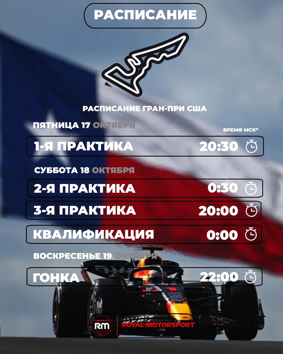Расписание на уикенд (17.10-19.10) от Royal Motorsport. Время МСК