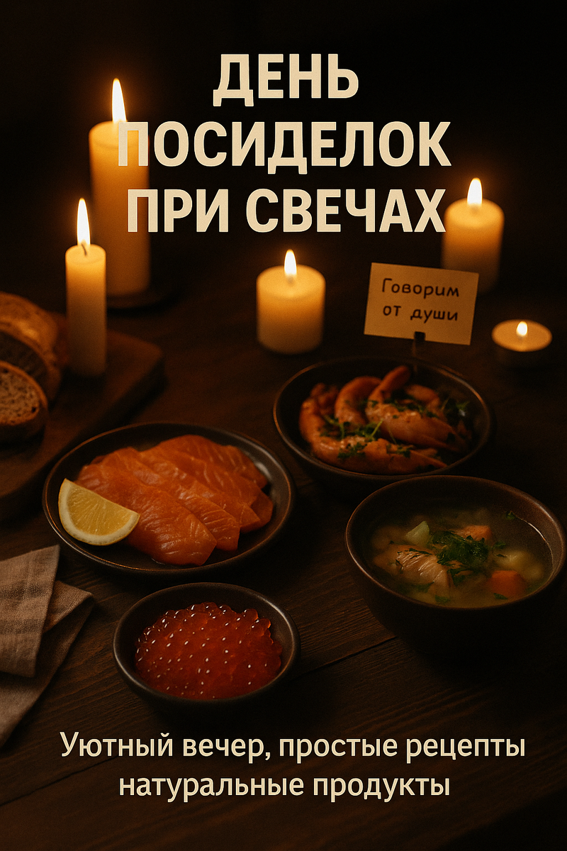 17 октября отмечается День посиделок при свечах — неформальный, но всё более популярный праздник, который появился в Европе как символ замедления ритма жизни. Его смысл прост: выключить яркий свет, отложить гаджеты и провести вечер в кругу близких, наслаждаясь разговором и вкусом настоящей, «живой» еды. Свечи здесь — не просто декор. Они возвращают естественное ощущение времени и создают атмосферу, в которой мы начинаем слушать — и себя, и других. Чтобы вечер получился по-настоящему уютным, стоит соединить три составляющих: мягкий свет, тепло еды и искренность общения. На столе идеально будут смотреться блюда из натуральных продуктов: Такое меню создаёт баланс между простотой и элегантностью — а блюда готовятся быстро, сохраняя максимум пользы и вкуса. Психологи отмечают: мягкое, «живое» освещение помогает нервной системе расслабиться, снижает уровень тревожности и даже улучшает вкус еды. В приглушённом свете рецепторы сосредотачиваются на аромате, а не на визуальной оценке — поэтому б