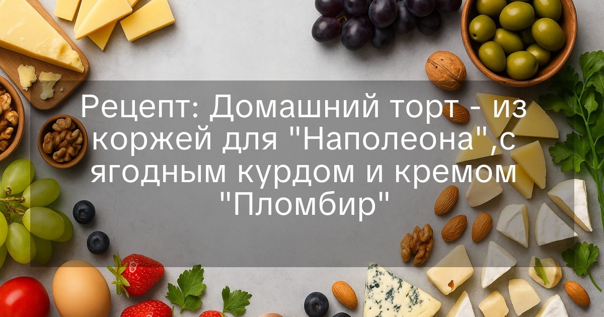 Рецепт: Домашний торт — из коржей для «Наполеона»,с ягодным курдом и кремом «Пломбир»