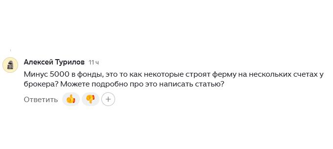 Но хочу предупредить, что, во-первых, я не даю индивидуальных инвестиционных рекомендаций, а во-вторых, если вы вдруг не учтете какую-то комиссию и уйдете в минус на 5001 рубль, но комиссия спишется не с 1 рубля, а со все суммы! И вот эту комиссию не отобьет ни покупка фондов ликвидности, ни облигаций!