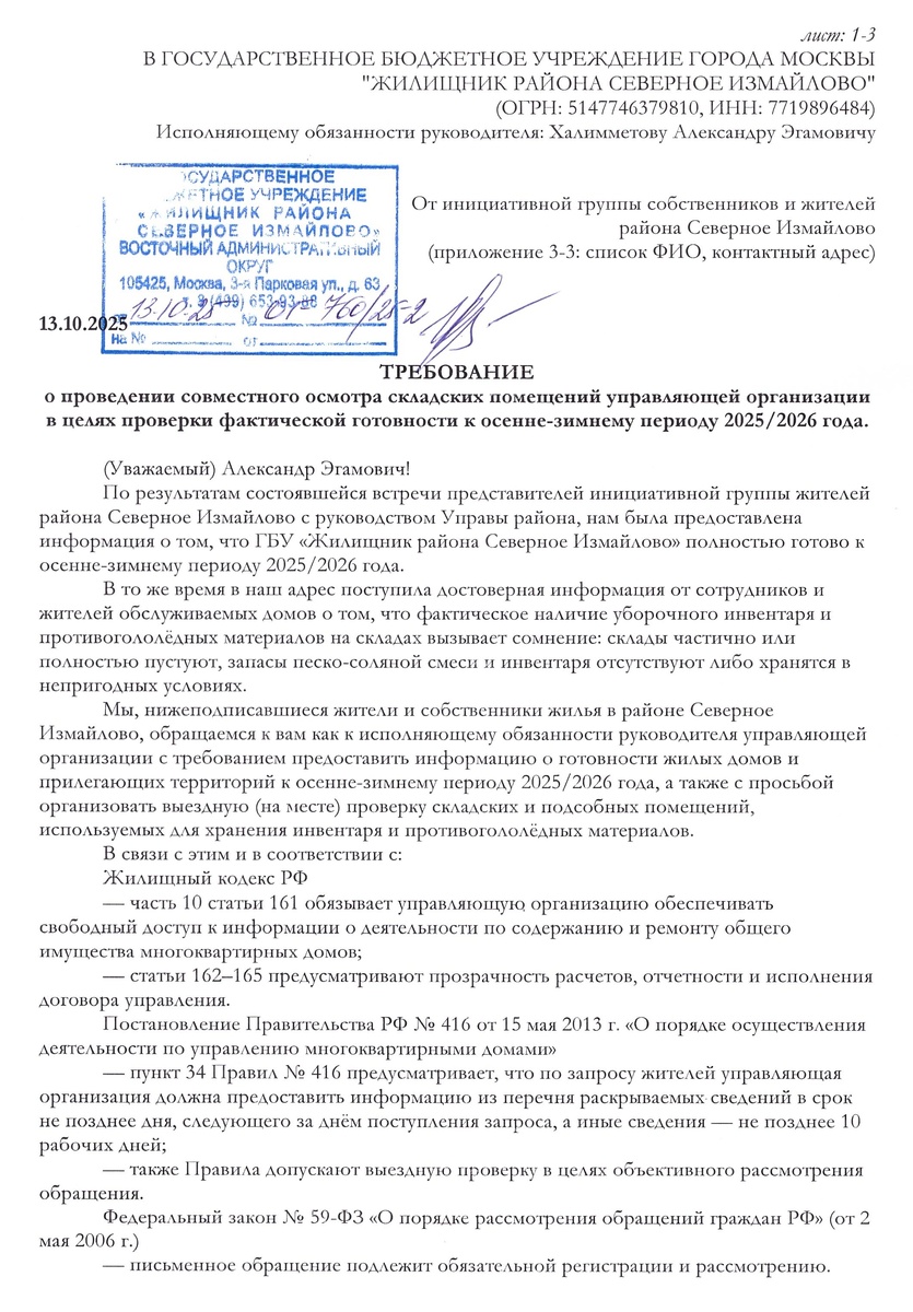 Поэтому наша инициативная группа направила официальное обращение в ГБУ «Жилищник района Северное Измайлово». Мы запросили целый перечень документов, который должен быть у любой уважающей себя управляющей организации: