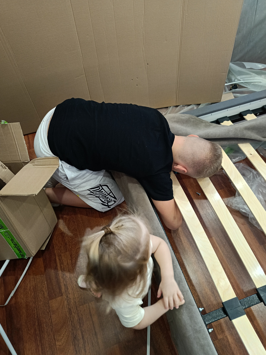 Какое-то время назад была заказана кровать. Во вторник курьер её привез. Вчера мы с сыном её собрали. Чуть без ноги не осталась 😁. Ничего , всё обошлось, просто ушиб.