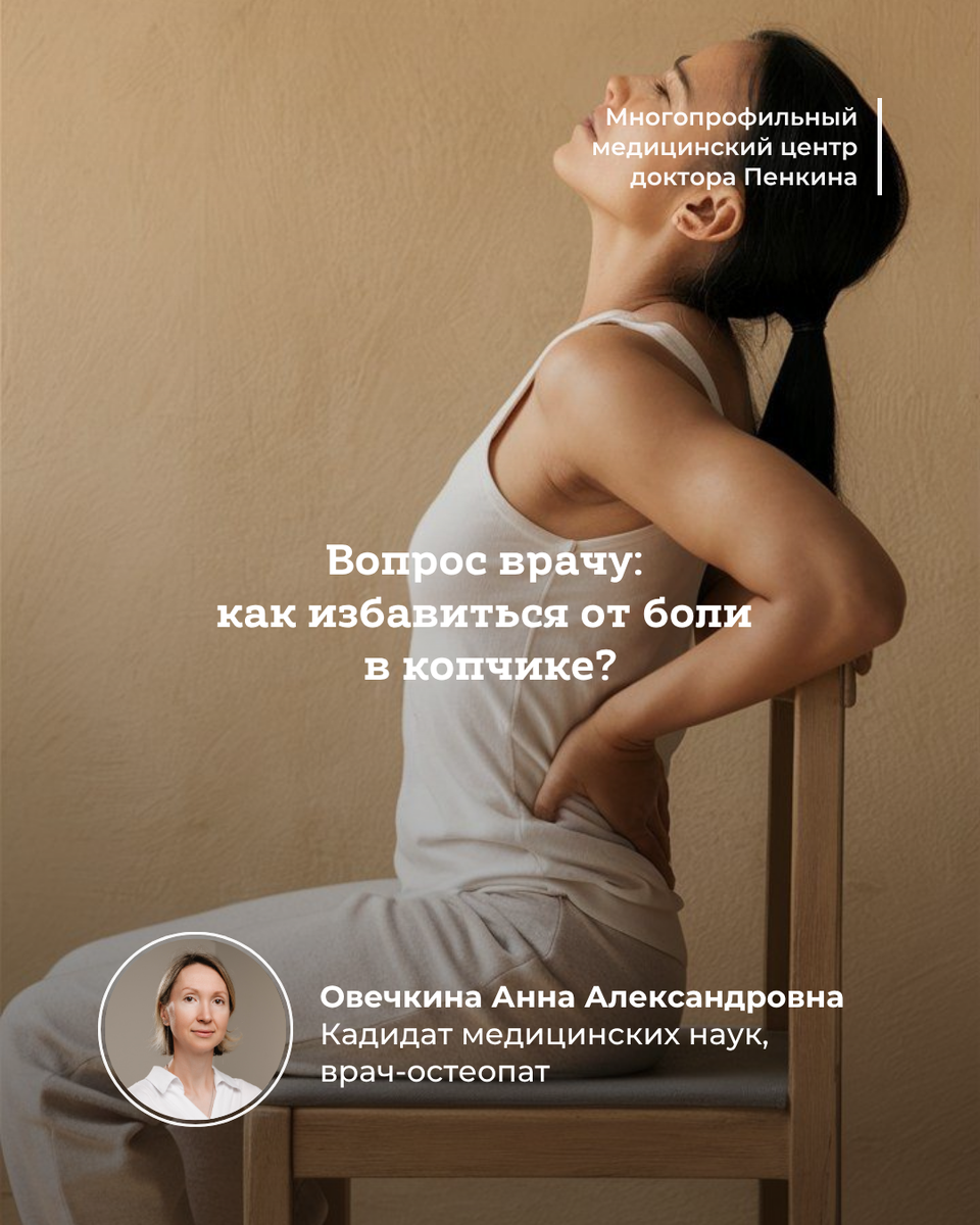 Вопрос врачу: «Боль при сидении и вставании в области копчика. Травм не было. Можно ли это исправить остеопатией?» 🩺 Отвечает Овечкина Анна Александровна, врач-остеопат: