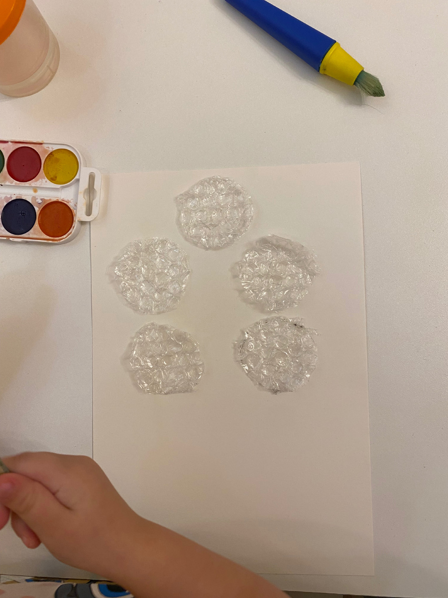 В наши больничные будни я чуть не пропустила такой важный праздник, как предстоящий День отца, который вся страна будет праздновать 19 октября. Благодаря Вам, идейным, креативным и творческим, я резко встрепенулась и мы с дочей почти выздоровели на фоне нашего сговора и подготовки к празднику 🎉 В прошлом году наш подарок вызвал у папы шквал эмоций. Правда, это больше был плакат. Особое место ему теперь дома отводится. В этом году мы поскромнее. Справились с открыткой. Ну как справились? Гуашь отмывала я долго, Верочку тоже пришлось отмачивать в ванной. Всего лишь хотелось яркости, которой не хватает у пальчиковых красок. Задумка открытки проста: дочь несёт папе воздушные шары. На этот раз в ход пошла воздушно-пузырьковая плёнка, которую я уже давно приберегла, не только же для самодельных глаз 👁️ её использовать… На лист картона приклеила вырезанные круги из пузырьковой плёнки. Это наши будущие воздушные шары. Я использовала двусторонний скотч. Так остается эффект воздушности у п