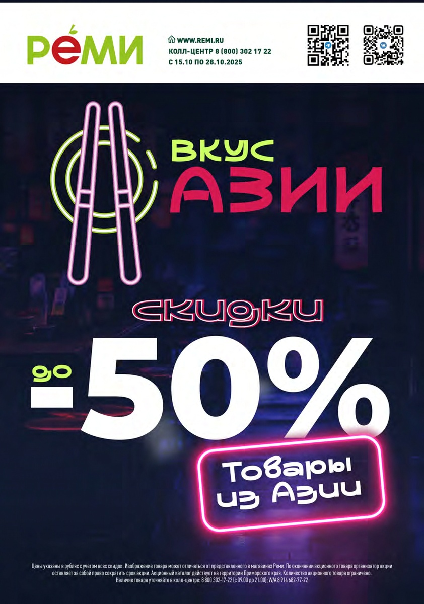 Колесо Востока запущено, и это ваш шанс сорвать куш, наслаждаясь любимыми азиатскими деликатесами! Мы открываем двери в мир гастрономических удовольствий, где каждая покупка может принести вам призы! Что же ждёт вас в этом путешествии вкусов? Откройте для себя сочные дамплинги, пикантные соусы, закуски, ароматную лапшу и бодрящий кофе, а также другие экзотические напитки, способные удовлетворить даже самого искушённого гурмана. И, конечно же, мы не забыли о сладкоежках! Разнообразие азиатских сладостей поразит ваше воображение и подарит незабываемые моменты наслаждения С 15 по 28 октября покупайте товары из этого КАТАЛОГА, регистрируйте код из полученного чека на сайте remipromo.ru и крутите колесо удачи Удачи!
