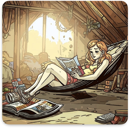 Не получив ответа Милана, принялась обыскивать дом, пока не обнаружила маму на чердаке. Лиамея, устроившись в старом пыльном гамаке читала журналы своей молодости.