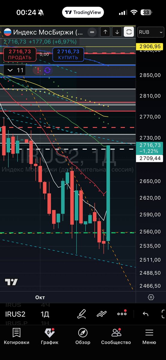 Сегодня индекс ставит рекорд по закрытию в этом году, прибавив почти 7%. Он бы и больше вырос, но ему мешали планки во многих акциях. Завтра мы откроем основной индекс сумасшедшим гэпом более чем в 100 пунктов. Но пока не о нем. Пока вернусь к этим рекордным ростам. Они никогда не происходят в нормальные фазы рынка, когда он растет. Если посмотреть, то за последние 3 года мы такие дни видели в основном в феврале-марте 22 года. Ну и в предшествующие этой дате Х дням. Предугадать такое движение практически нереально. Да, у меня есть пруфы, где я определил что сломлена нисходящая тенденция и даже вошел. Но, высидеть все движение и еще дальше - нереально. Я это все к чему. Могу с уверенностью сказать: на таком рынке долгосрочно делать нечего. Вы будете думать, что вот еще день-два такого роста и ваша позиция выйдет в ноль, а все сложится иначе. И вот такие свечи - это не «рынок заложил мир». Это миллионы акций Сбера (как пример), которые вам (нам) сгружают киты, слушая наше причмокиван
