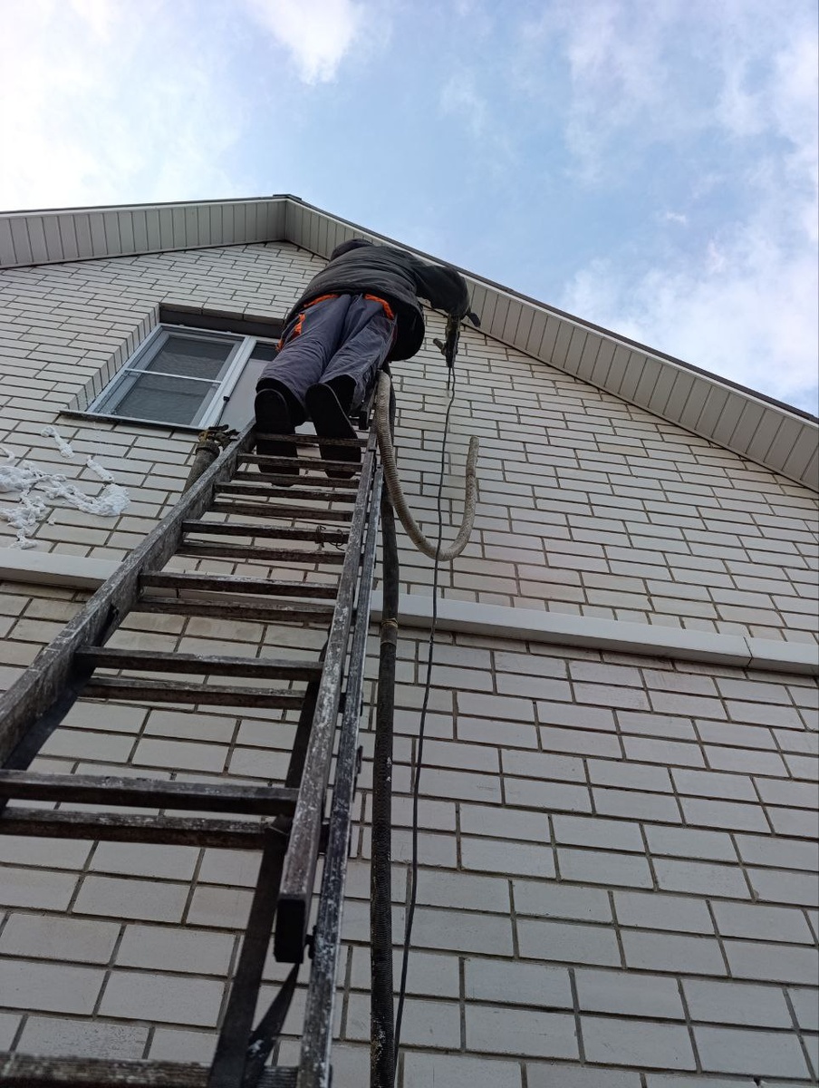 Новая Усмань. Прокачка стен с небольшим зазором 1-2 см , 160 кв метров, в 4х местах залазили на крышу , чтобы прокачать боковые стены " треугольники"