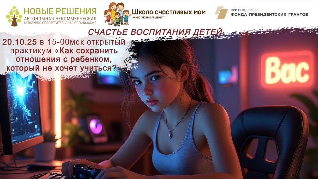 Проект "Школа счастливых многодетных мам» реализуется АНКПО “Новые решения” при поддержке Фонда Президентских грантов