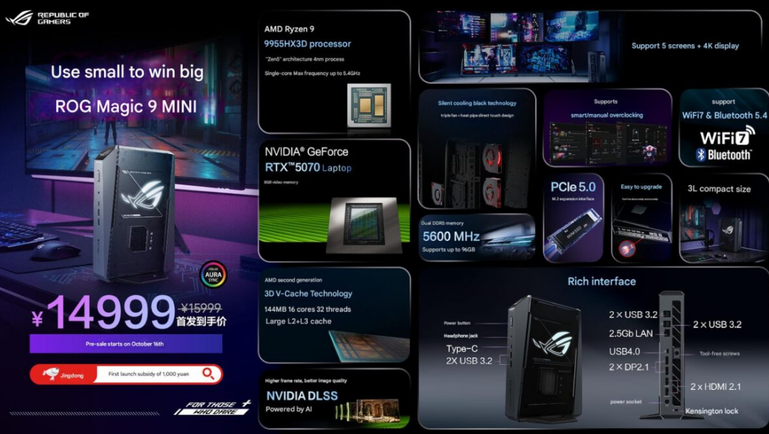 ASUS представила ROG NUC 9 Mini с Ryzen 9 9955HX3D и видеокартой RTX 5070