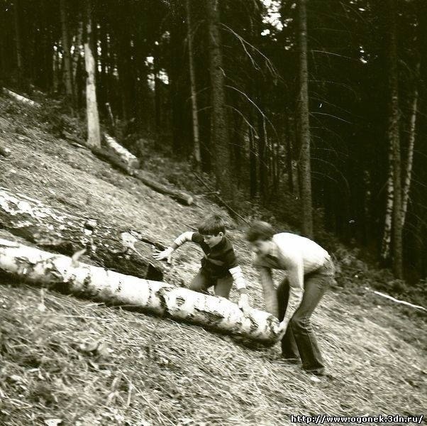 Фотографии из архива. Так появился склон, на котором соревнуются могулисты. Так же , традиционно на нем проходят соревнования по горнолыжному спорту в параллельном слаломе. На фотографии Столяров Андрей Игоревич и ребята, которые помогают расчищать новую трассу. #Огонёк #история #Чусовой