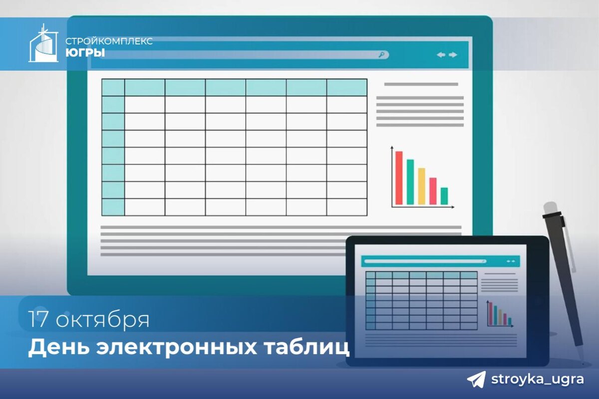 Доброе утро, команда подписчиков Стройкомплекса Югры! 🗓️ Сегодня не просто пятница, а 17-е октября, и, если заглянуть в календарь знаменательных дат, окажется, что в этот день ежегодно, начиная с 2010 года, в некоторых странах отмечают интересный праздник - День электронных таблиц (Spreadsheet Day). Именно в этот день в 1979 году была выпущена первая программа электронных таблиц VisiCalc, которая предназначалась для компьютеров типа Apple II. Ну, а сегодня в этот день — время вспомнить, как экономят наши нервы и время Excel, Google Таблицы и Lotus. 📊 Согласитесь, День электронных таблиц — это вполне себе «родной» праздник для строителей, архитекторов, транспортников и коммунальщиков. Ведь без компьютерных табличек не обходятся: ➡️ Сметы и расчёты: формулы автоматизируют даже сложные вычисления. ➡️ Контроль проектов: сводные таблицы отслеживают сроки и расходы. ➡️ Визуализация: диаграммы превращают данные в понятные отчёты для заказчиков. И если вы до сих пор не на «ты» с «эк