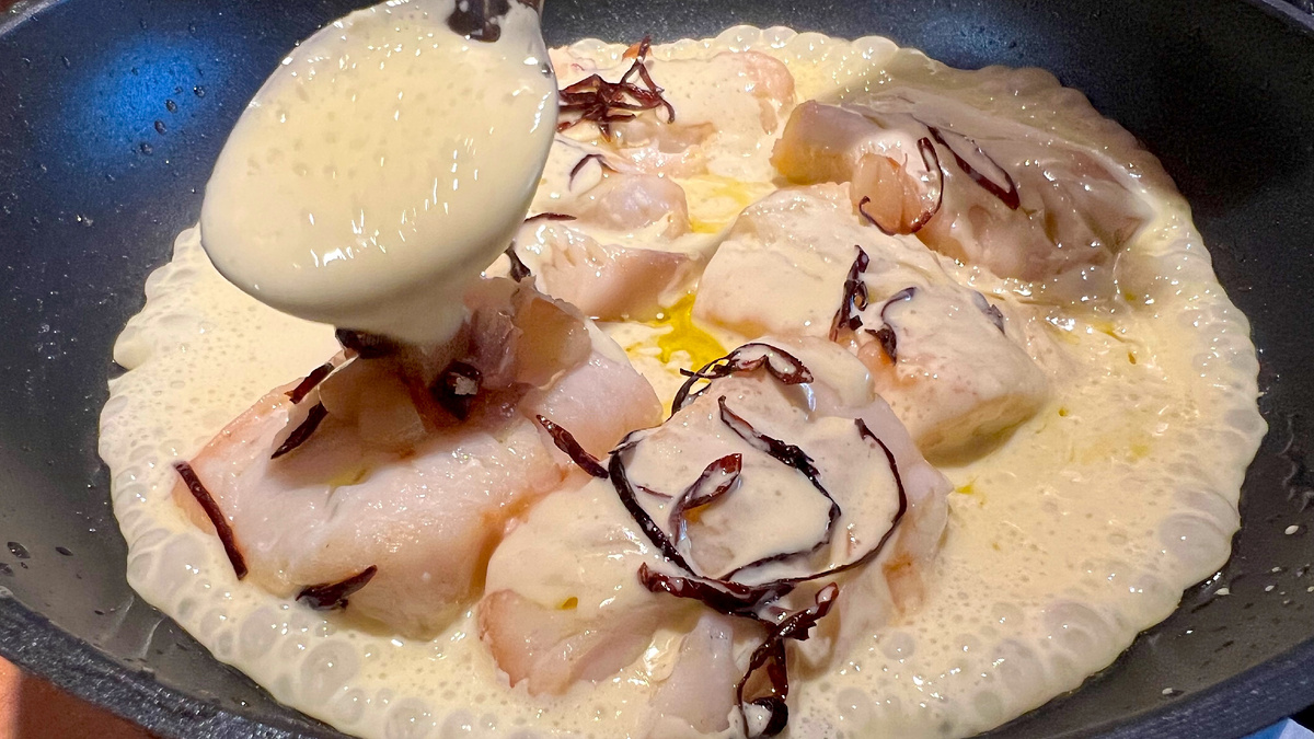 Дальнейшее напоминало алхимический опыт … на раскаленное оливковое масло - чеснок и острый перец … шипение … аромат, от которого слезятся глаза … но уже не от горя … а от предвкушения. Обжариваешь в этом душистом аромате рыбу … вынимаешь … а потом - магия … охлаждаешь немного масло … и взбиваешь … венчиком … блендером … чем угодно. Главное - до состояния воздушной … почти невесомой пены. Пены … которая пахнет чесноком … солнцем и чем-то таким … средиземноморским. Потом возвращаешь рыбку в это облако блаженства на сковородку … слегка прогреваешь - и вуаля. Простой деликатес на столе …