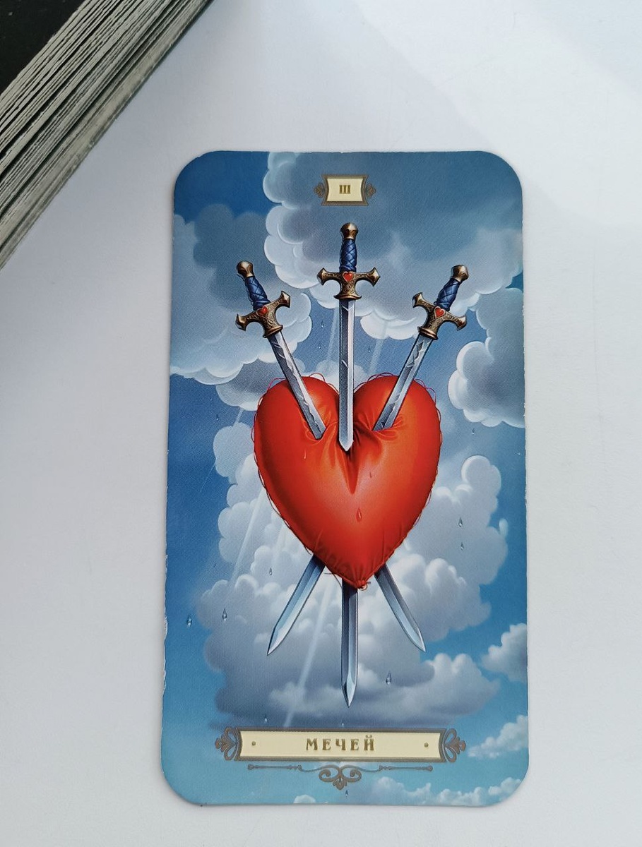 🃏Карта дня 17.10.2025 3 Мечей Карта предвещает несчастливый и сложный день, который придется прожить, не утратив самообладания и репутации. Проблемы на работе, необходимость принятия сложного решения, отказ от чего-то важного и дорогого. Не лучшее время для встреч. Поездки и путешествия лучше отменить. Это не самый лучший день для начинаний, новых предложений и знакомств. Ведь есть большой риск разочароваться, потерять веру в себя и захандрить еще больше. Чтобы избежать неприятностей, не планируйте на сегодня романтические свидания, а так же помните, что рассчитывать можно только на себя и свои силы.