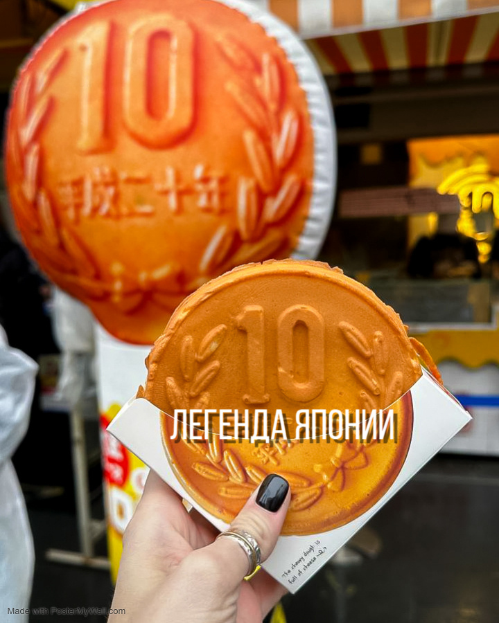 Странно? Нет. Это – культ. Сейчас расскажу почему. Эта огромная монета из теста выглядит как сувенир, но это реальный японский street food.