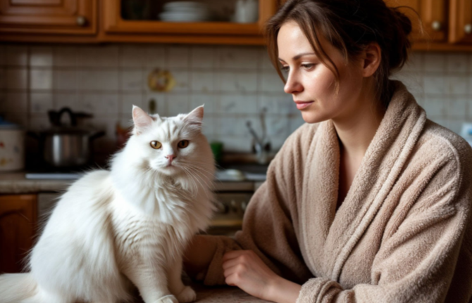 На тумбочке сидел Жорик. Огромный белый кот смотрел на Свету желтыми глазами, полными печали. Он мяукнул тихо, жалобно, и Света вдруг поняла, что кот тоже потерял свою семью.