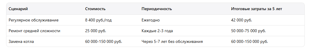 Регулярное обслуживание — это не дополнительные расходы, а инвестиция в надежность и экономию вашей системы отопления. Ситуация в доме 120 м² в Гатчинском районе: После нашего ежегодного обслуживания: Типичные последствия отсутствия обслуживания: Расчет для газового котла стоимостью 80 000 руб.: Выгода: 128 000 руб. экономии за 5 лет Регулярное обслуживание позволяет: P.S. Помните: стоимость 10 лет регулярного обслуживания примерно равна стоимости одного нового котла. Выбирайте — платить меньше сейчас или значительно больше потом.