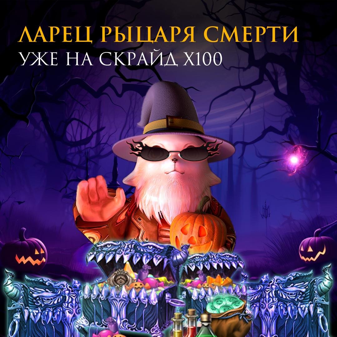 👻 Хэллоуинских приятностей в ленту Ларец Рыцаря Смерти – это новый лутбокс, открыв который вы сможете с определенным шансом получить один из ценных предметов: – Призрачная Монета – Amulet's Life-Stone (High Grade) – Amulet's Life-Stone (Top Grade) – Blessed Scroll: Enchant Weapon (S-Grade) – Blessed Scroll: Enchant Armor (S-Grade) – Gem Enchant Scroll – Blessed Gem Enchant Scroll – Double Scroll Enchant Weapon (S-Grade) – Double Scroll Enchant Armor (S-Grade) – Elemental Shard – Купон на Драгоценный Плащ Хэллоуина – Купон на Высший Костюм – Призрачный Сундук (Top Weapon) – Black Gem Ticket – Red Gem Ticket – Destruction Scroll: Enchant Armor S (S-Grade) – Destruction Scroll: Enchant Weapon S (S-Grade) – Crystall Scroll: Enchant Armor S (S-Grade) – Crystall Scroll: Enchant Weapon S (S-Grade) – Destruction Gem Enchant Scroll – Earring of Antharas – Necklace of Valakas – Chaotic Necklace of Frintezza Лутбокс доступен только на Скрайд Х100. Заказываем по ссылке ниже 💀 Заказать Ларец