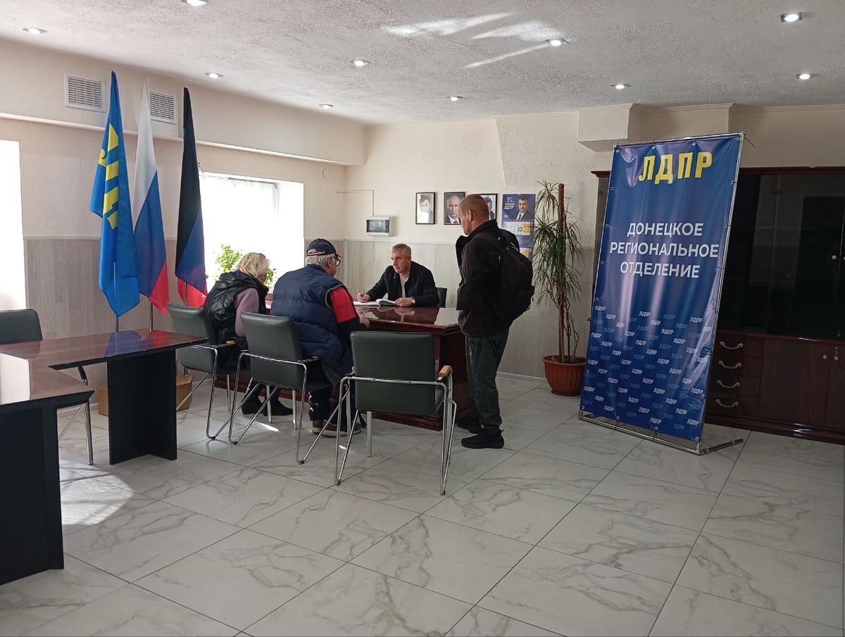🇷🇺 Сегодня, в рамках Всероссийского приёма граждан, депутаты Енакиевского городского совета от ЛДПР Сергей Аксенков и Сергей Быковский провели встречу с жителями города.