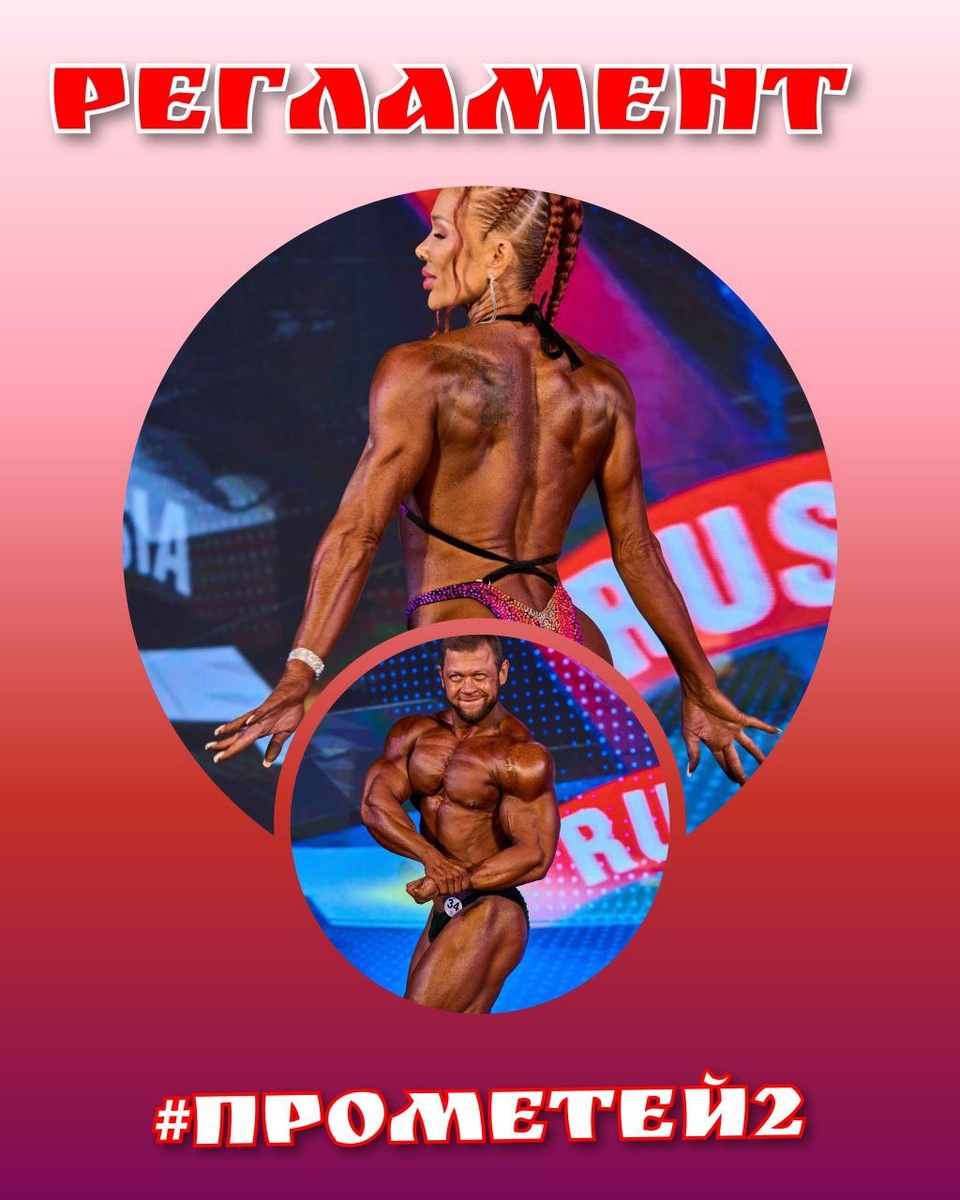 ‼️Регламент #ПРОМЕТЕЙ2 ❗️ОКОНЧАТЕЛЬНОЕ КОЛИЧЕСТВО РОСТОВЫХ, ВЕСОВЫХ И РОСТО-ВЕСОВЫХ КАТЕГОРИЙ БУДЕТ ОПРЕДЕЛЕНО ПО ИТОГАМ ОЧНОЙ РЕГИСТРАЦИИ❗️ 🎈13.00 1. Юниорки фитмодеь 2. Мастера 35+ фитмодель Сравнения и награждения 🎈 1. Юниоры, классик физик, бодибилдинг сравнения 2. Юниорки, фигура, сравнения 3. Мастера 40+ мужчины классик физик, сравнения 4. Мастера 40+, 50+, 60+ мужчины бодибилдинг, сравнения 5. Мастера 35+, женщины фигура 6. Мастера 35+, женщины велнесс 7. Награждение 🎈 1. Юниоры фитмодель дресс, купальник 2. Мастера 35+ фитмодель дресс, купальник 🎈 1. Юниоры, пляжный фитнес и пляжный бодибилдинг, сравнения 2. Мастера 40+ пляжный фитнес и пляжный бодибилдинг, сравнения 3. Награждение 🎈 1. Юниорки фитнес бикини, сравнения 2. Мастера 35+ фитнес-бикини, сравнения 3. Мастера 40+, фитнес-бикини, сравнения 4.Мастера 50+, фитнес-бикини, сравнения 5. Награждение. 🎈 1. Юниорки фит-модель дресс. Дефиле в платье 2. Мастера 35+ фитмодель дресс Дефиле в платье. 3. Награждение. 🎈 1.