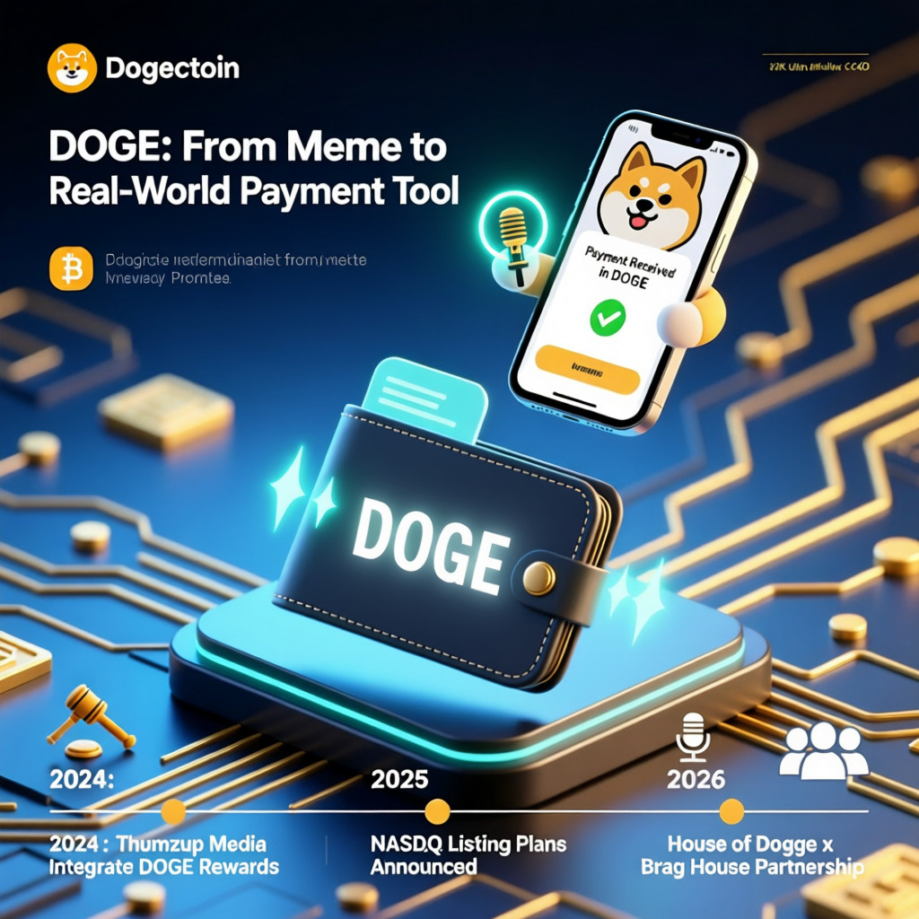 После резкого снижения цены DOGE начал отскок. Эксперты указывают, что, несмотря на краткосрочные колебания, у актива остаются прочные перспективы на ближайшие месяцы и годы. Американская медиакомпания Thumzup Media, чьи акции котируются на NASDAQ и которая имеет связи с Дональдом Трампом, запускает поддержку Dogecoin в своем приложении. Теперь контент-мейкеры смогут получать вознаграждения за свою работу именно в этой криптовалюте. Это знаменует переход DOGE от символического статуса к практическому использованию в экономике. Институциональное признание DOGE ускоряется. Объединение House of Doge с Brag House и планы по листингу на NASDAQ в 2026 году открывают путь к интеграции монеты в традиционные финансовые рынки. В США уже поданы три ходатайства о создании биржевых фондов на основе Dogecoin, а объем средств в фонде REX-Osprey DOJE превысил 25 миллионов долларов. Если раньше DOGE ассоциировался в основном с Илоном Маском и мемами в соцсетях, то сегодня его начинают воспринимать как
