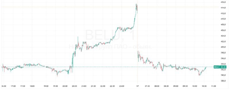 Котировки упали на минимуме на 5,89%, до 390 за бумагу. И хотя к 10:34 мск бумаги отскочили к 392,8, они остаются в числе лидеров падения на широком рынке, теряя 5,22%.