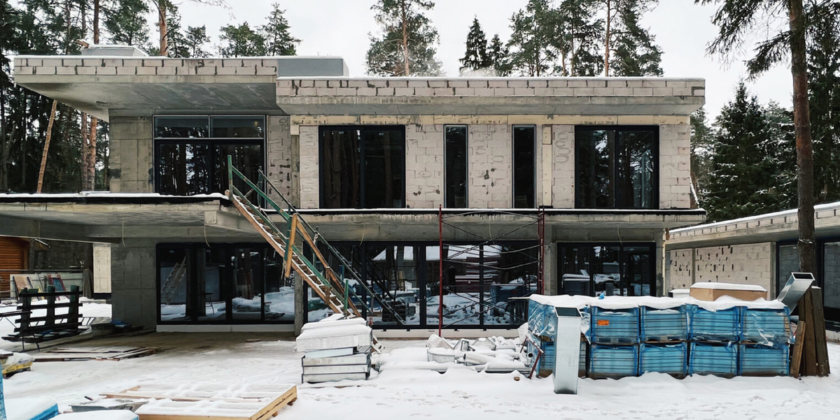 Что происходит до того, как современная загородная вилла переходит к своему владельцу? Что скрывается за внешней красотой дома? Строительство — процесс длительный и требующий подготовки. Перед тем, как возводить основу и каркас дома, мы выезжаем на объект, проводим геодезические исследования и определяем виды грунта. Это позволяет нам выбрать правильный тип фундамента. До начала стройки мы рассчитываем все сметы, заключаем договор с клиентом и огораживаем территорию. На ней команда геодезистов разбивает участок, определяет границы стройки и котлована под будущий дом. Далее идёт детальная работа по проекту: определяется площадь жилья, намечается разметка под инженерные объекты и начинается стройка. Несущие конструкции и наружные стены мы возводим из бетона и металла. Срок эксплуатации этих материалов долгий, поэтому о конструктивной устойчивости и долговечности своих монолитно-каркасных домов мы не беспокоимся. Реже строим из газоблока. Назовём остальные этапы строительства по списку: Д