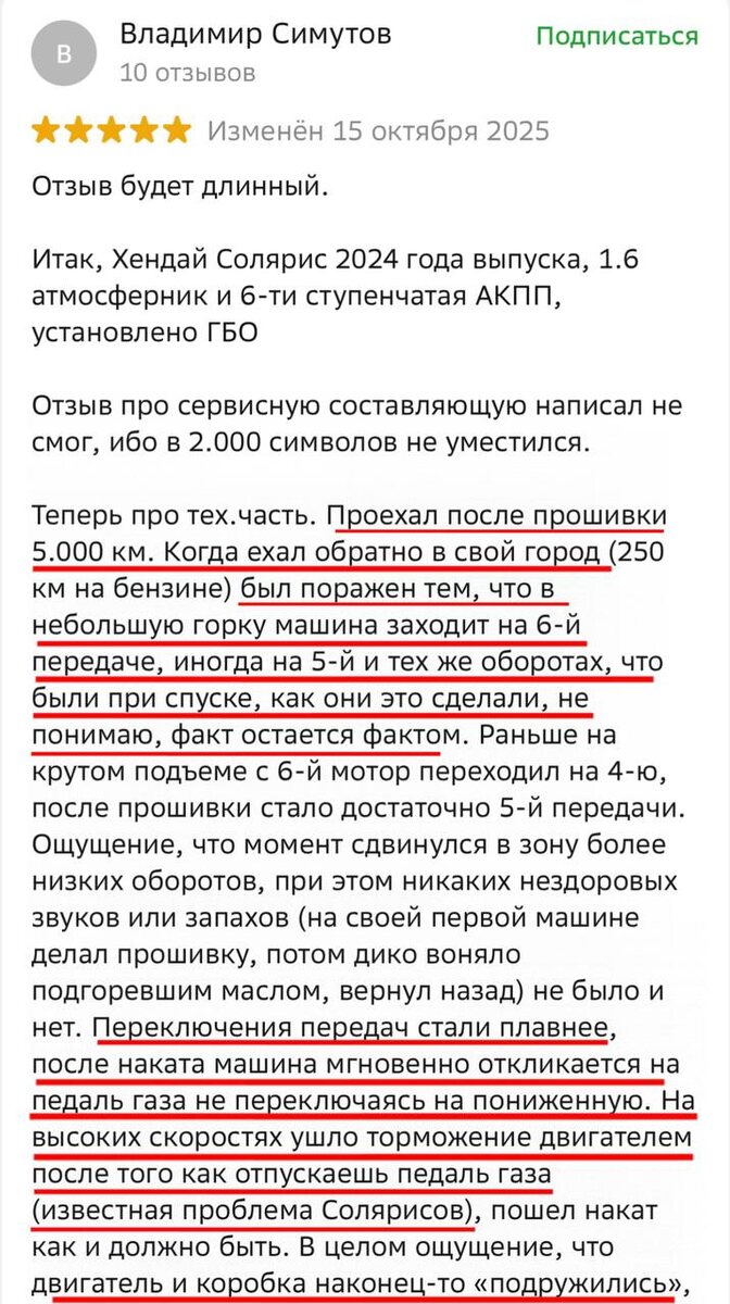 ❤️ ОТЗЫВ ВЛАДЕЛЬЦА HYUNDAI SOLARIS 2024 ИЗ НАБЕРЕЖНЫХ ЧЕЛНОВ Владелец приезжал к нам на комплекс: - замена катализатора на пламегаситель - увеличение мощности С автомобилем работал мастер Азат. Владимир, благодарим за доверие и обратную связь! 🙂 Больше отзывов о нас можно почитать: 📍 на Яндекс 📍 в 2ГИС Мы работаем по записи: Написать нам в WA +79033054194 Оставить заявку здесь