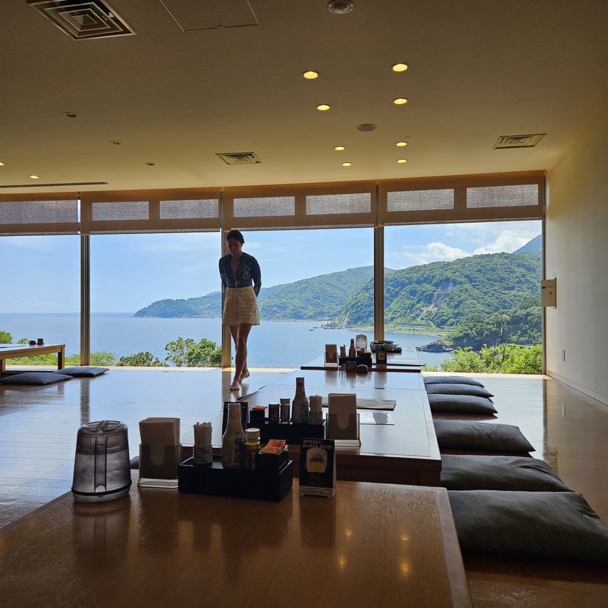 Ресторан на отвесной скале, за Ксюшей Тихий океан. Внимание вопрос: