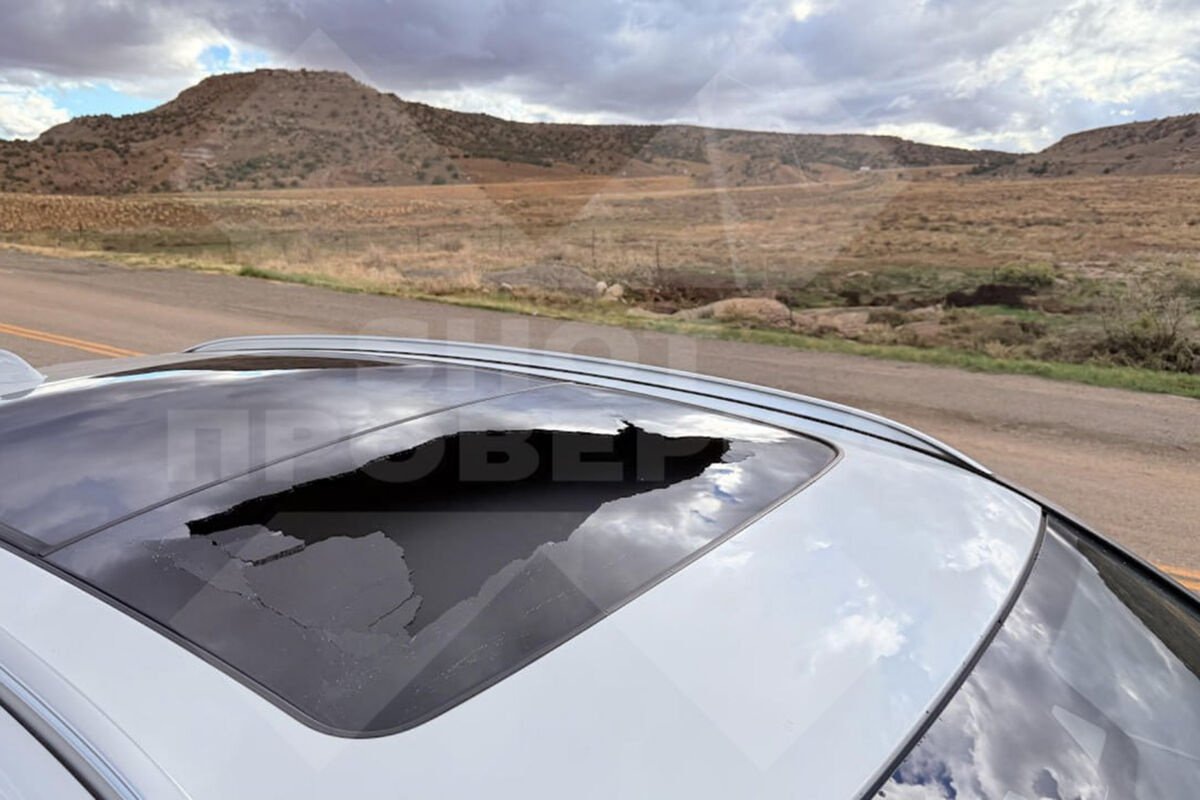 От осколков мужчину спас солнцезащитный козырек. По его словам, следов удара на самой крыше не было.