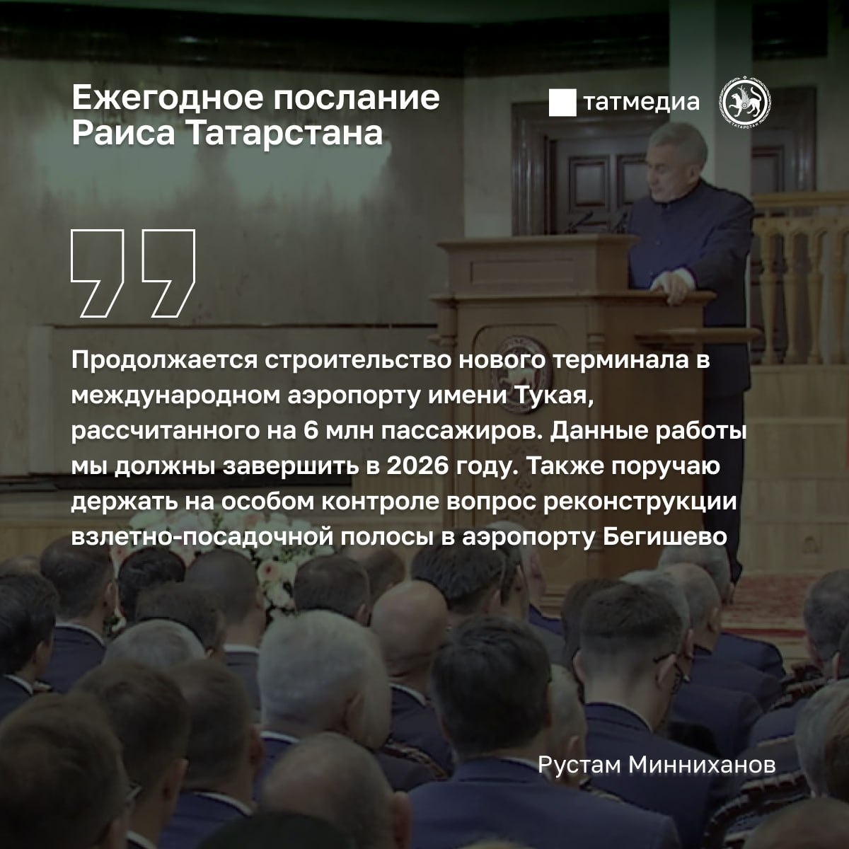 В ответ на пост ✈️🏗Новый терминал казанского аэропорта должен быть запущен в 2026 году Об этом заявил Раис Татарстана Рустам Минниханов, обращаясь с ежегодным посланием Госсовету РТ. @tatmediaofficial | Все каналы Татмедиа ™️ 1-й новостной MAX-канал Татарстана - подпишитесь.