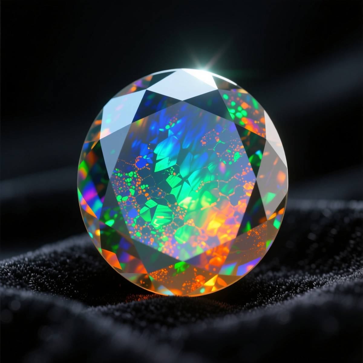 Представьте, что вы держите в руке не камень, а кусочек сна. Он переливается всеми цветами радуги, но ни один из них не остаётся надолго. Он то вспыхивает золотом, то гаснет в серебре, то уходит в глубокую синеву, как закат над океаном. Вы пытаетесь уловить его суть — но он ускользает. Не потому что скрывает. А потому что не может остановиться.