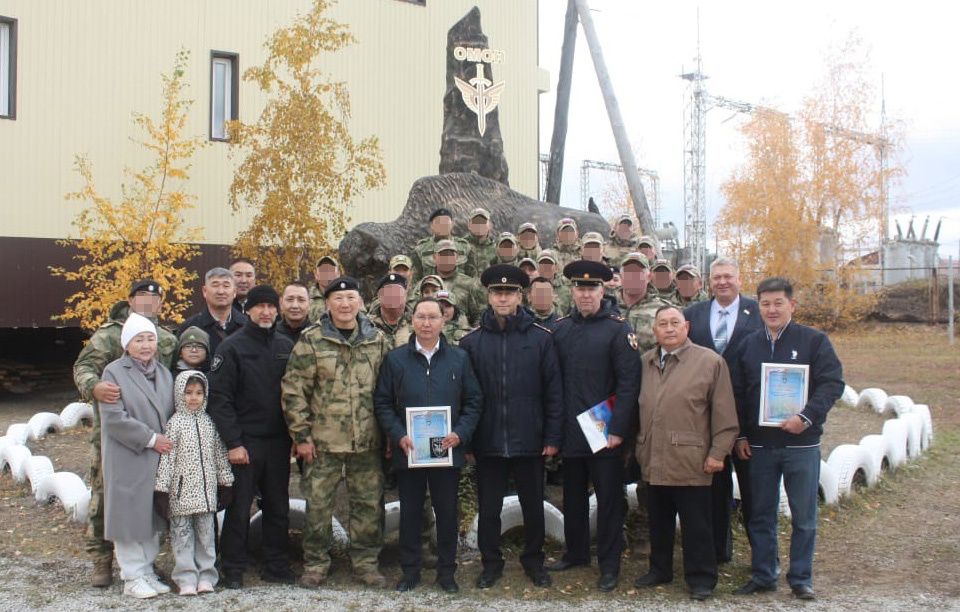В торжественном открытии скульптуры приняли участие начальник регионального управления Росгвардии полковник полиции Сергей Челищев, директор биологических ресурсов, особо охраняемых природных территорий и природных парков Яков Сивцев, руководитель управления специальных программ АГИП республики Андрей Никифоров, представители общественности и ветераны ОМОН.